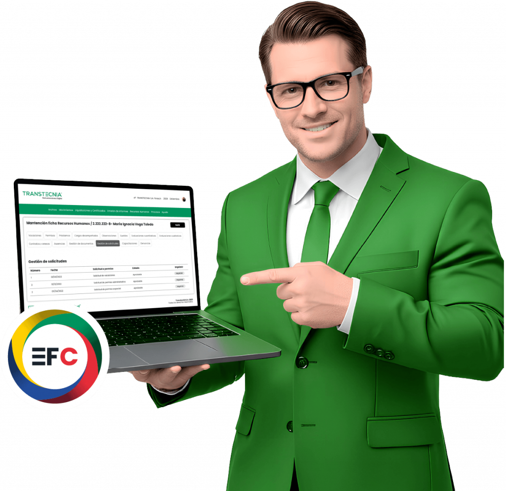 Integra y automatiza tus Remuneraciones ● Firma Electrónica. ● Portal del Trabajador. ● Integración con MiDT. ¡Compruébalo AHORA! Centralizar La gestión detu equipo. Optimizar Procesos de RRHH. Mejorar Las relacionesy comunicaciones. Integrado nativamente con el Portal del Colaborador y Firma Electrónica. Nuevo Lenguaje de los Negocios. ¡Compruébalo AHORA! Descubre qué opinan nuestros clientes Haz clic en la imagen para ver su testimonio. Haz clic en la imagen para ver su testimonio. Tu mejor decisión: Innovación, trayectoria y confianza. ¡Compruébalo AHORA! ¡Nuestro equipo está listo para ayudarte! Completa tus datos y un ejecutivo te contactara. [2602-04] Ecosistema EFC Clientes Nuevos *Ingresa tu Nombre y Apellido. *Ingresa tu Correo Electrónico. *Ingresa tu Número de Teléfono. Enviar *Todos los campos son obligatorios.